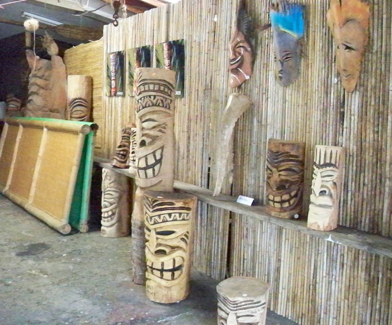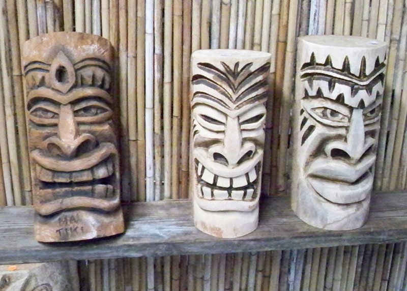 Living in Florida since the ’70s, I’d seen his Tikis everywhere, of course, but I didn’t relate them to a specific creator until I got into the Polynesian Pop scene over the past decade. I first met Wayne and Beki at SunFest in West Palm Beach, where his giant Mai Tiki booth was a fixture at the south end of the fine art marketplace. It stuck out like a sore thumb, but in a good way. Wayne and Beki were gregarious and inviting to all who passed by. He told me he did good business at SunFest, one of the state’s largest music and art festivals.