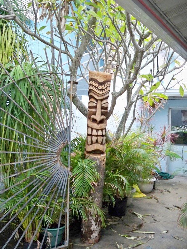 Over the years, Wayne became a fixture not only in Brevard County and throughout Florida, where his Tikis are ubiquitous, but also in the worldwide surfing and Tiki scenes. The studio and gallery became a local attraction, and his fame grew large enough to match his imposing figure and robust personalty.