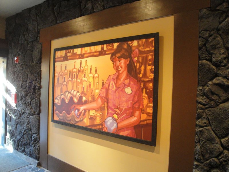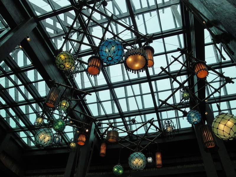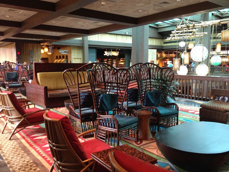 Without the massive waterfalls and plantscape in the center, the lobby is now much more open and includes a lot of impressive new South Seas-styled furniture. You can now stand in the center and see the Magic Kingdom’s Cinderella Castle in the distance. Even more impressive is the collection of giant float lamps hovering above the second floor, giving the entire lobby a real Polynesian supper club feel. And, as expected, the new artwork around the lobby is more reminiscent of Disney’s fictional Adventureland than Hawaii. This is a return to the original theme of the Polynesian and will be continuing with future upgrades, Seifert said.