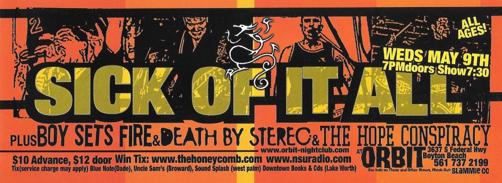 Also: Boy Sets Fire, CKY, Death By Stereo, Dynamite Boy, Hatebreed, No Innocent Victim, One King Down, Snapcase