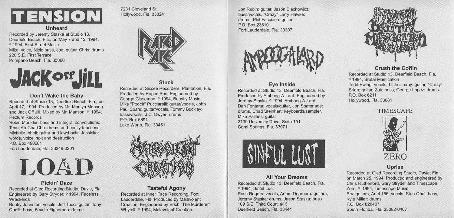 • Power from the Vault - A 20-song compilation (released in 1997 by Conquest Music Group) featuring rare recordings from eight of South Florida's most hard-rocking bands of the 1990s: L.U.N.G.S., Raped Ape, Amboog-A-Lard, Quit, Excessive, Opposite Earth, Bone China, and In Your Face.