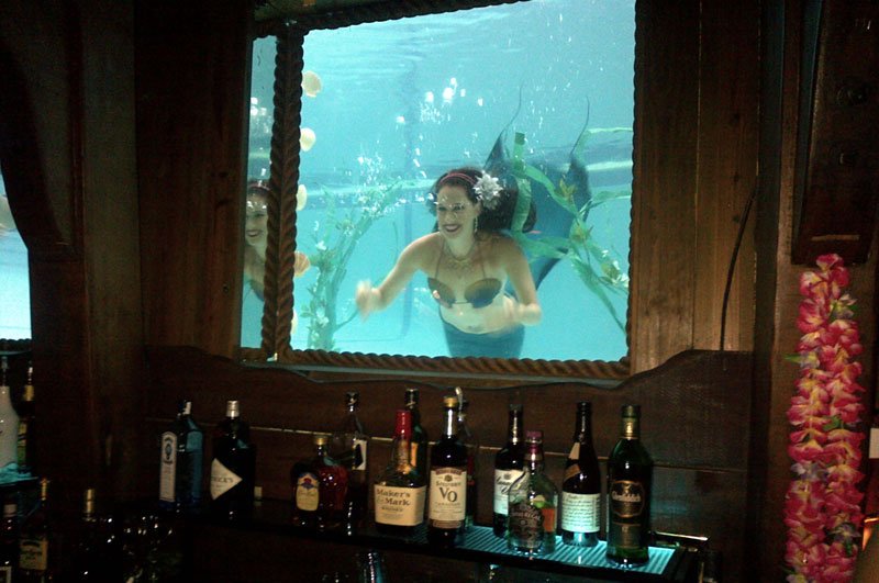 So, aside from The Wreck Bar, where can one go today to enjoy a cocktail and view a live mermaid show? One unlikely answer offered by Jeff is the Sip ‘n Dip Lounge at the O’Haire Motor Inn in Great Falls, Montana. If you’re in California, try the Dive Bar in Sacramento.