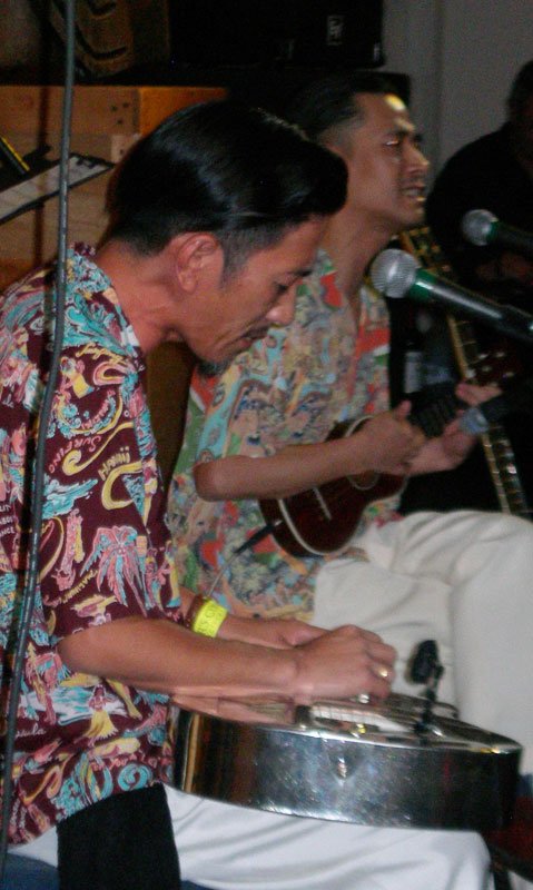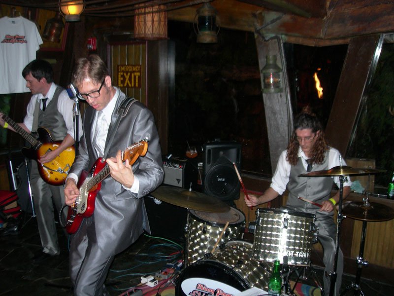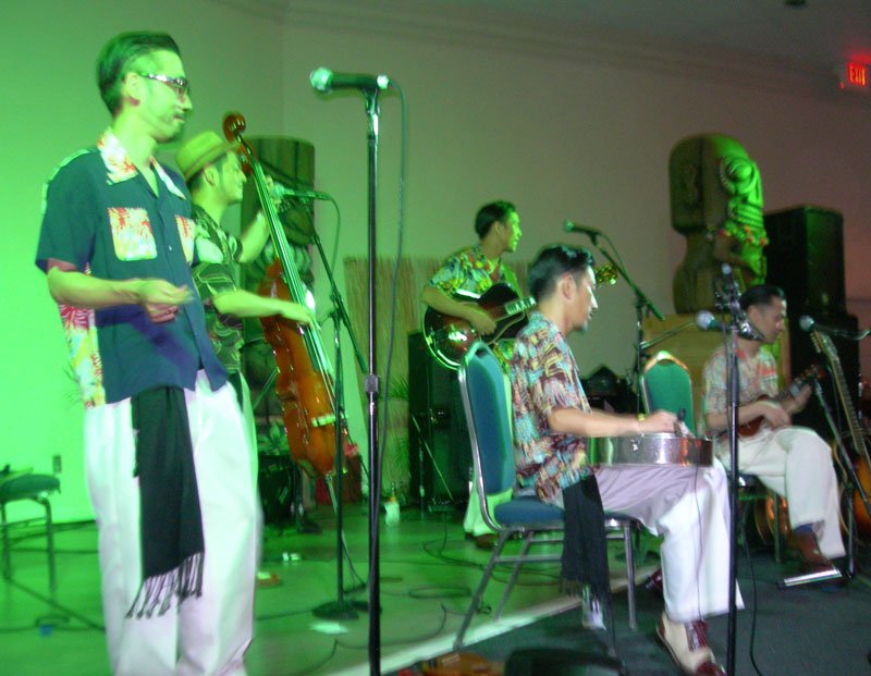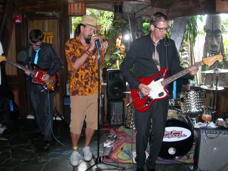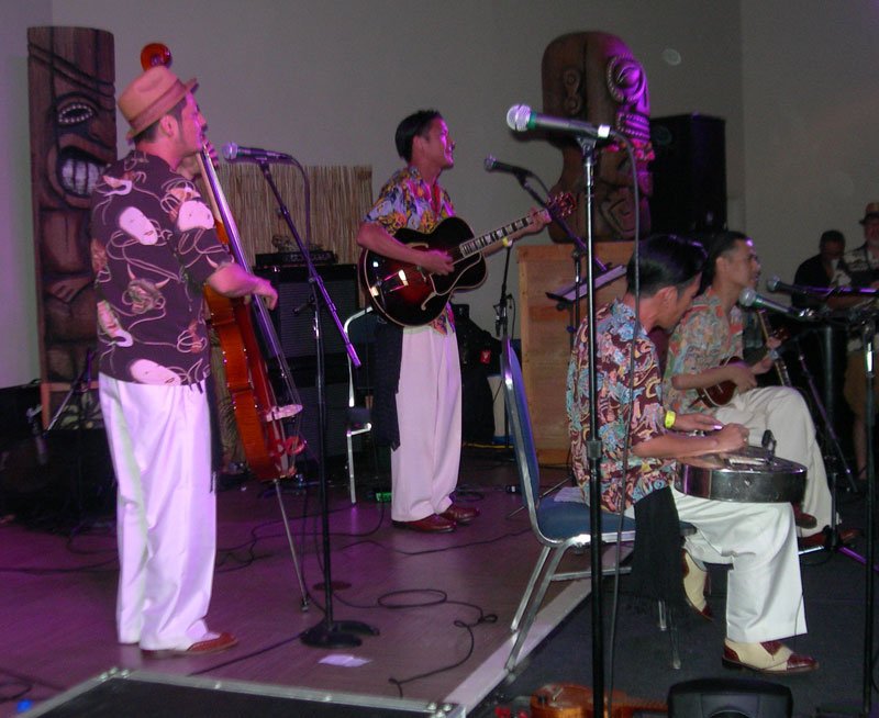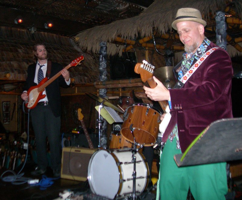 While The Molokai was rocking in the front of the restaurant, the Tahiti Room in the back was also party central with rollicking sets by El Capitan (Atlanta surf scallywags), Grinder Nova, and The Intoxicators. A special award should go to The Hukilau’s entertainment coordinator, Brian Crum, who not only made sure all three stages were running smoothly but also did his usual great job behind the kit for The Intoxicators. I just hope he found the time to eat (and drink).