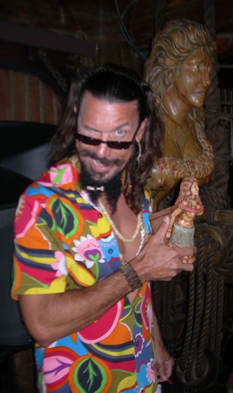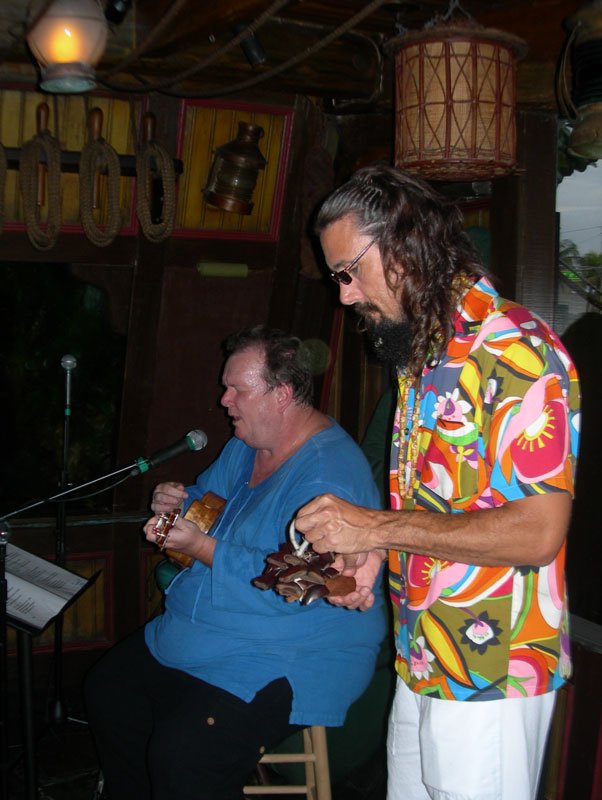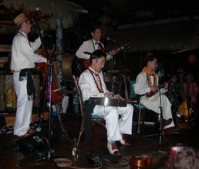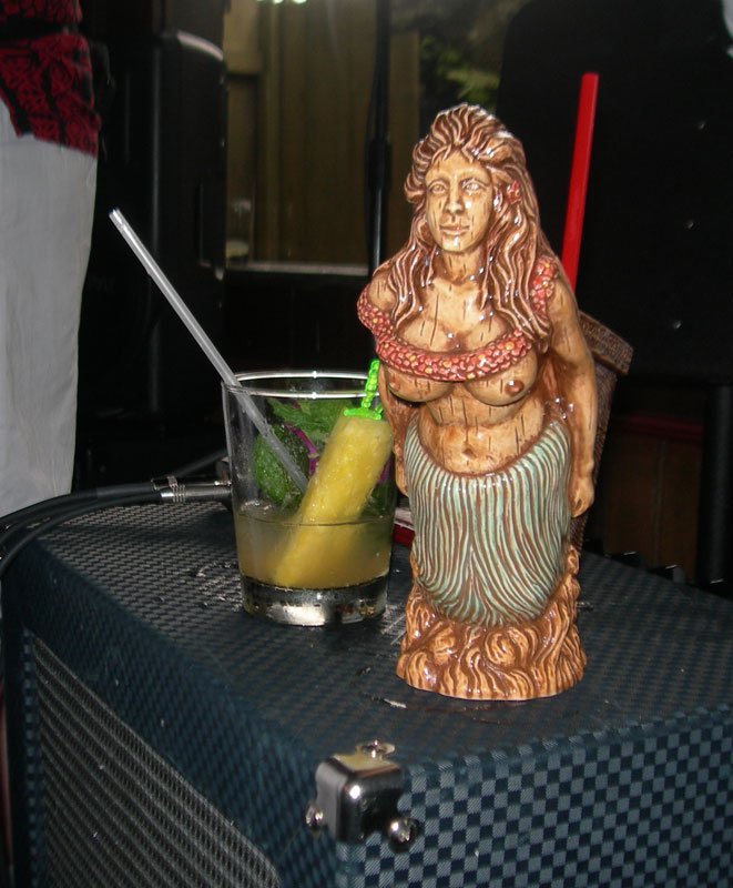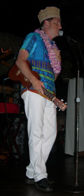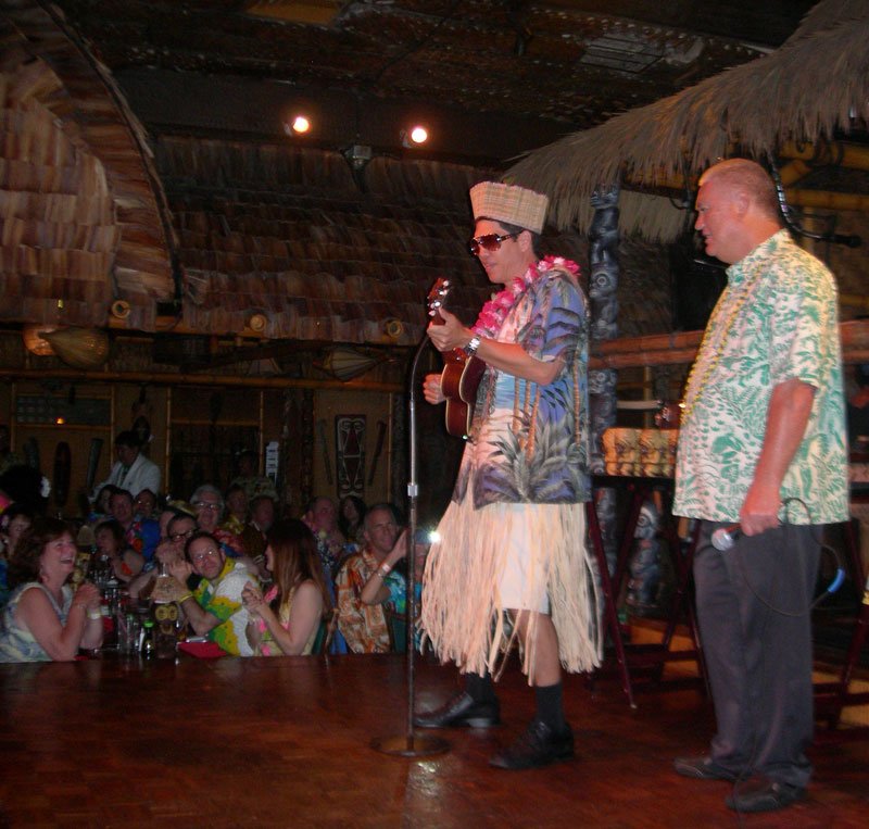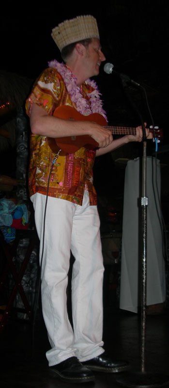 At 7, Pablus took over for a solo set during the second happy hour in The Molokai, with percussion from Crazy Al, of course. His performance of Rum Barrel, which name-drops the very bar he was performing in, was greeted by a round of Barrels for many lucky imbibers, courtesy of Martin Cate, owner of San Francisco’s acclaimed Smuggler’s Cove. Shortly thereafter, these lyrics came true: “Rum Barrel tricky. Rum Barrel fool ya. Rum Barrel make a haole dance the hula.”