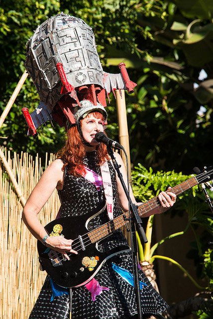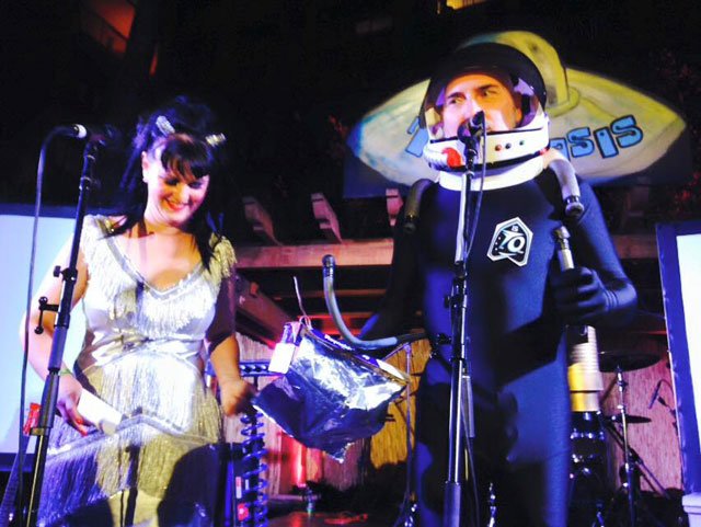 For von Stroheim, the highlight was Saturday night’s headlining performance by Man or Astro-man? on the poolside stage. “It was a super rockin’ set that ended with them jumping in the pool with their clothes on, then returning for a two-song encore,” he said. The band rarely does encores, von Stroheim was told, and even then it’s never two songs. The out-of-this-world surf combo from Alabama put on a spectacle, blasting through many of their instrumental classics and even lighting a theremin on fire during the performance.