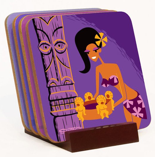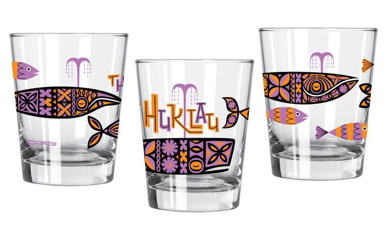 The remainder of the merchandise will be available at the event in The Hukilau booth at the Tiki Treasures Bazaar. This includes a wide assortment of Shag designs on glassware (both Mai Tai and Zombie glasses), coasters, T-shirts, bar and beach towels, plus a swizzle stick.