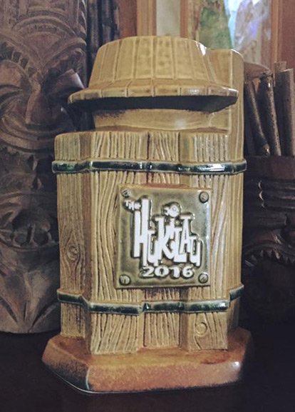 The Hukilau’s limited-edition mug and pendant, which both pay tribute to historic Tikis at The Mai-Kai, went on sale during a special pre-sale for passholders on May 31. The mug was created by John Mulder and Eekum Bookum). The pendant was carved by Crazy Al Evans and produced by Perry Drake.