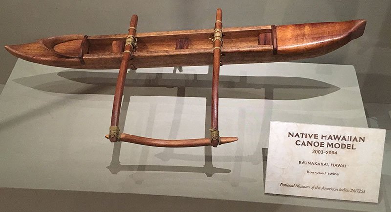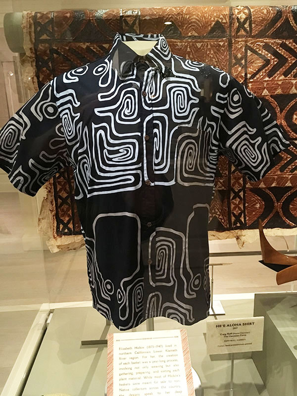 All of the artwork comes from the collections of those two museums. Included among the 89 pieces representing 40 different American Indian tribes is a prominent display dedicated to California and the islands of Hawaii. It includes models of a canoe and a sailboat based on those used by Polynesian seafarers who settled the Hawaiian islands more than 1,700 years ago. There’s also a huge piece of Polynesian tapa cloth, circa 1900s. Of interest to more modern tastes is the hand-printed He’e Aloha Shirt crafted by native Hawaiian Craig Neff of The Hawaiian Force. You can find his store in downtown Hilo, Hawaii.