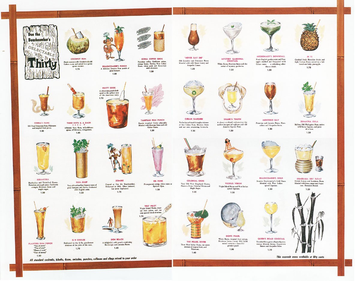 * Considering the connection to Don the Beachcomber, it’s no surprise that the original menu from 1956 is dominated by Beach’s drinks. Of the original 43, all are Don the Beachcomber descendants except for one Mariano Licudine original: the Black Magic. All of them were tweaked and adjusted by Licudine and Bob Thornton to create a new, more accessible range of cocktails. Of those 42, 33 are still on the menu today. The other 10 are considered to be among the “lost cocktails.”