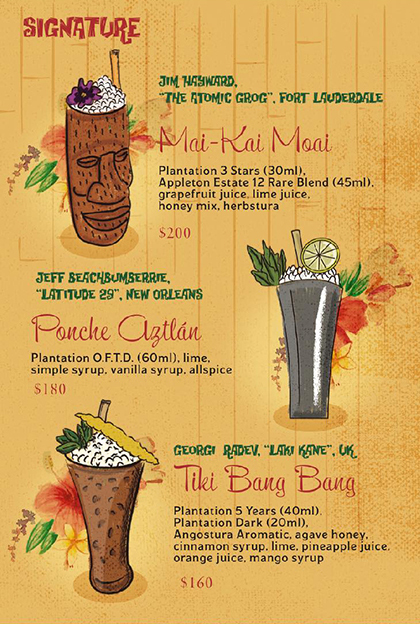 Mai Tai | Deep Sea Diver | Mutiny | Mystery Drink | Dr. Fong | Yeoman’s Grog | Bora Bora | Tahitian Breeze | Demerara Cocktail