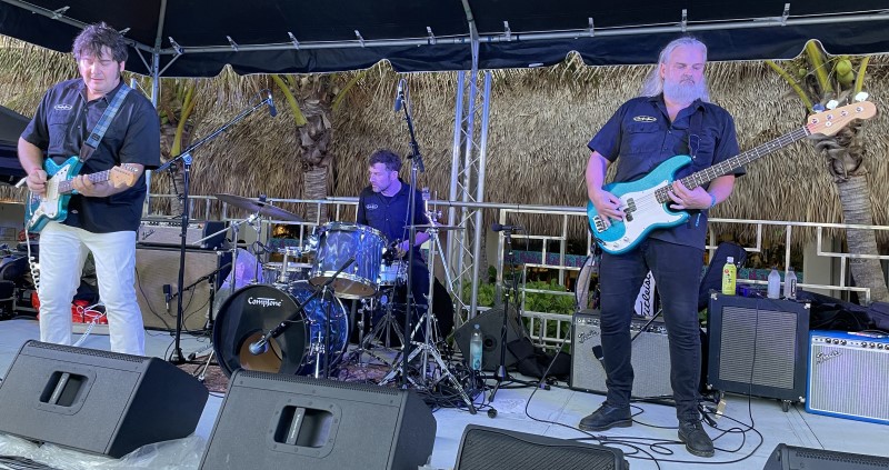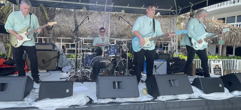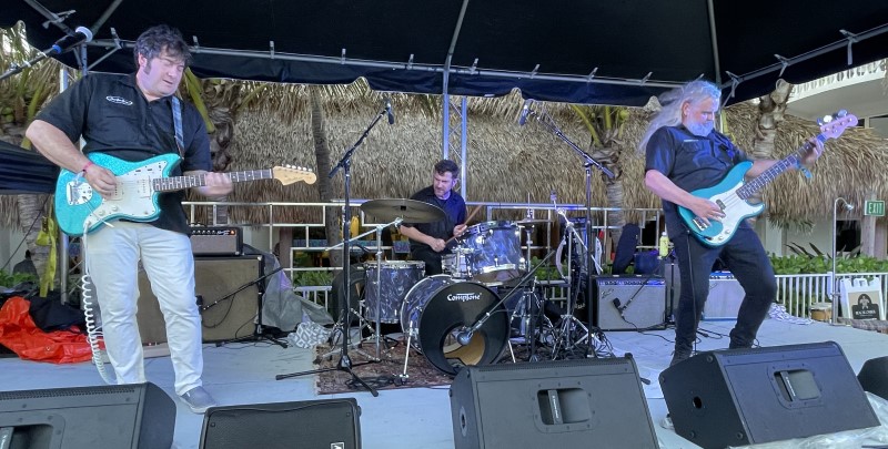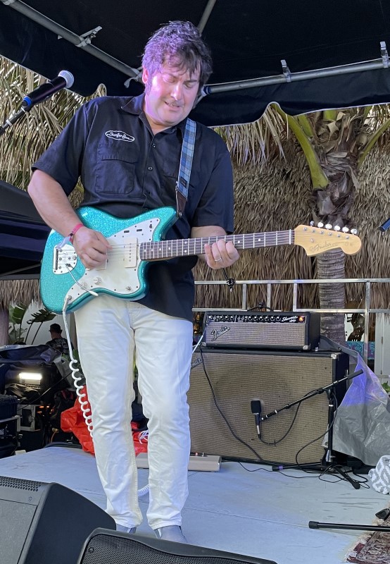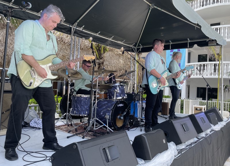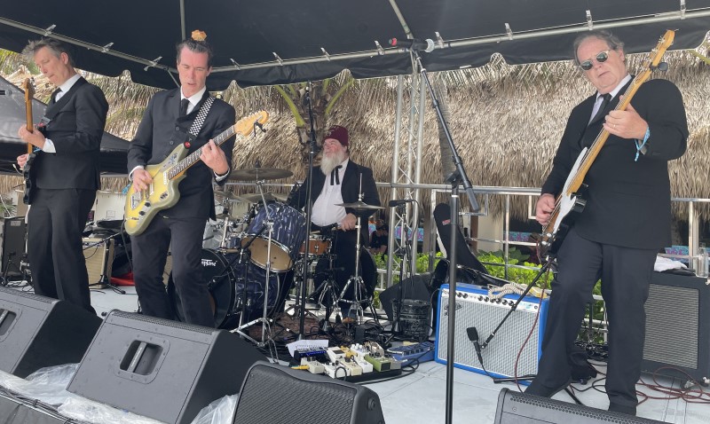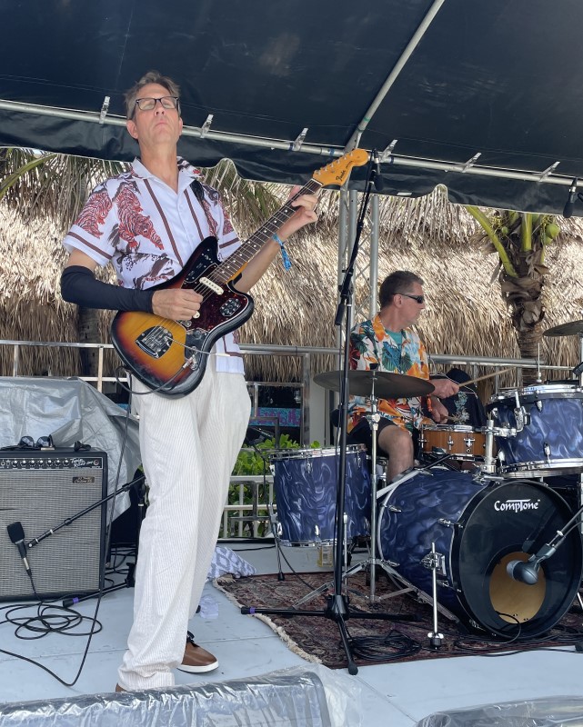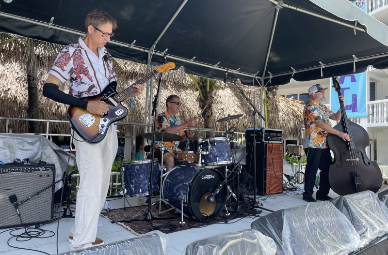 Skinny Jimmy Stingray and his band rocked the Saturday pool party, awaking villagers after an early rain delay. Based in nearby Deerfield Beach, the instrumental surf guitarist made his ninth appearance at The Hukilau dating back to 2013.