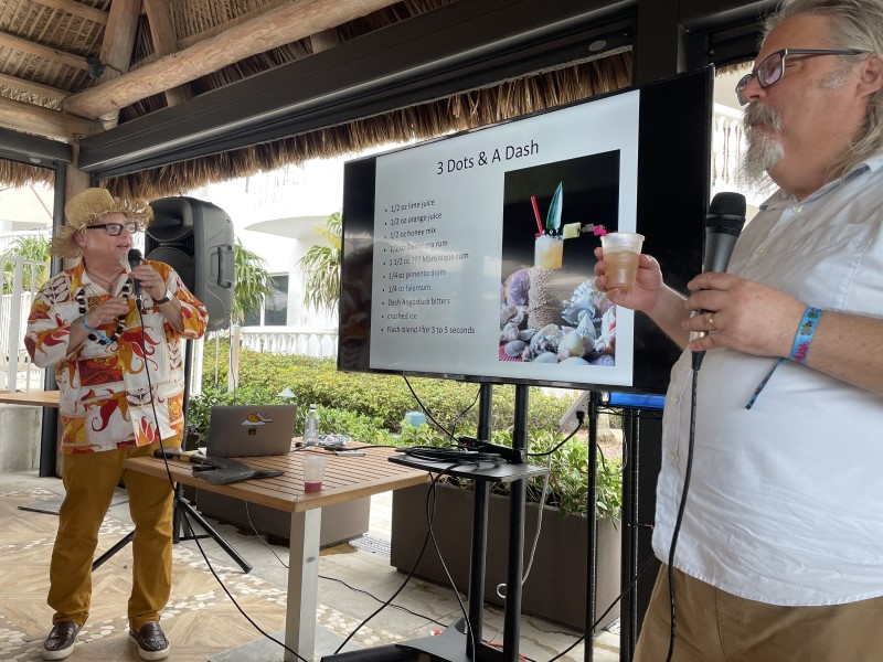 While not “symposiums” in the traditional sense, the daily appearances of Spike Marble and Ed Hamilton were just as informative and entertaining. Marble seemed to be everywhere, from Friday’s Jungle Voyage bungalow party (with Rita’s Lost weekend and Hi-Tide Recordings), to Saturday’s tasting of the new Hamilton Breezeway Blend rum, to Sunday’s live recording of Spike’s Breezeway Cocktail Hour. The latter two events were co-hosted by Hamilton, the brand owner and importer who brought the rum to market in record time.