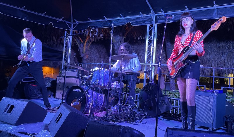 Hailing from Madrid, Spain, L’Exotighost brought a new spin on classic exotica to The Hukilau with a distinctive style that employed guitar, drums and bass ukulele, plus vibraphone, theremin and other exotic sounds. The four-piece band’s poolside sets Friday and Saturday featured songs from its latest album, Kamongo (2022), available on Hi-Tide Recordings.