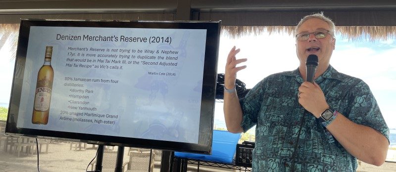 These rums pre-dated Martinique’s strict AOC (appellation d’origine contrôlée), adopted in 1996. While similar in style, they’re not exactly the same as today’s “grand arôme rums,” a key element in the Denizen brand referenced in the symposium’s title. Pietrek cites evidence that this high-ester rum was likely used only for blending. While Denizen is a fine mixing rum and makes a delicious Mai Tai, Pietrek points out that the blend of Jamaican and Martinique grand arôme rums is not exactly what Tiki’s forefathers were using. For a deep dive on this topic, check out this post on Pietrek’s Cocktail Wonk blog from 2021. [Watch video]