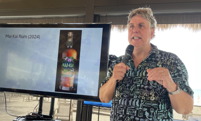 Other modern “Tiki rums” were discussed, including Plantation O.F.T.D., the overproof blend of rums from Jamaica, Guyana and Barbados introduced in 2018. Hukilau 2024 attendees Scotty Schuder, Beachbum Berry and David Wondrich (the latter sitting a few rows back during Pietrek’s presentation) were part of the “dream team” that helped master distiller Alexandre Gabriel create the blend. It was Wondrich’s late suggestion of adding Barbados rum to the blend that solidified the finished product, which has become a staple in modern Tiki bars. | [Watch video]