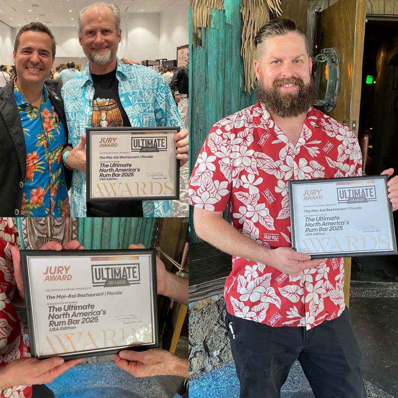 In an unexpected surprise, the Mai-Kai won The Ultimate North America’s Rum Bar 2025 Jury Award during the presentations at the Miami Beach Convention Center. The Ultimate Awards recognize “the best of the best” in the rum industry and are awarded annually by organizer Federico Hernandez at Miami Rum Congress.
