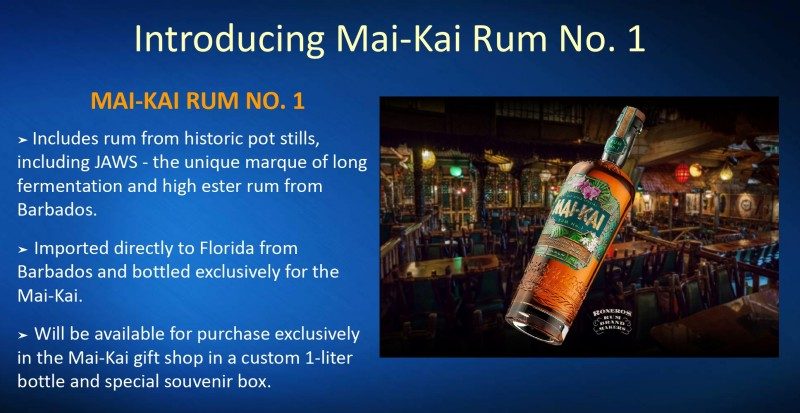 Stay tuned for details on when the new rum will arrive at the Mai-Kai, where it will not only be used in many of the classic cocktails, but also be available exclusively for purchase the gift shop in custom 1-liter bottles packaged in special souvenir box.