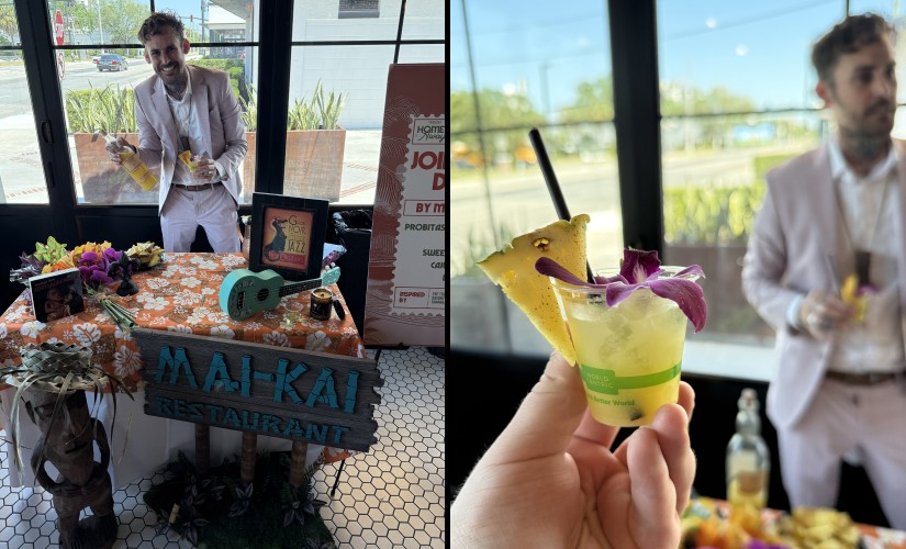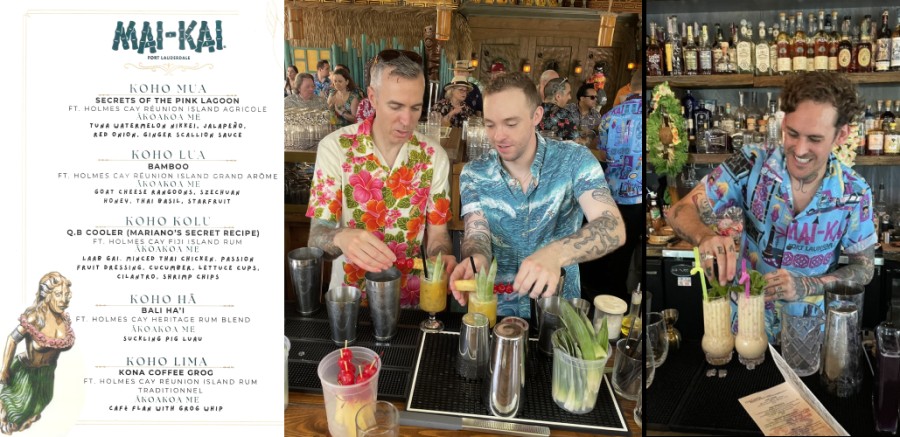 On Nov. 9, the festival hosted dozens of rum brands, including the Mai-Kai, for more than four hours of tastings at the historic Coral Gables Woman’s Club. Starr was joined by Mai-Kai manager Salomรฉ Sepulveda and Molokai Bar server Hannah Almanzar in greeting guests and serving samples in their colorfully branded booth. They also passed out Starr’s reconfigured version of the Mai-Kai’s classic Bora Bora cocktail featuring the new rum.