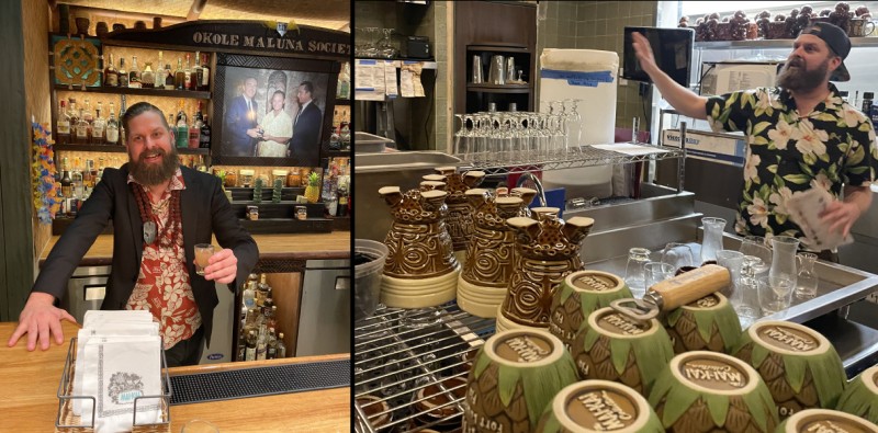 • Starr got hooked on Tiki cocktails when he worked in Hawaii at the Four Seasons Resort Hualalai starting at around age 25. He was introduced to the classics not at his job, but at the tiny Okolemaluna Tiki Lounge in Kailua-Kona on the Big Island. He said the bar (which closed in 2012) had a loyalty program in which guests drank every cocktail on the menu, which he completed several times. He then took his knowledge back to his job at the Four Seasons, introducing a special menu. The Mai-Kai had a similar program in its early years, ironically called the Okole Maluna Society. Starr’s main service bar now sports that name, “which ties my whole life into a full circle at this point,” he said.