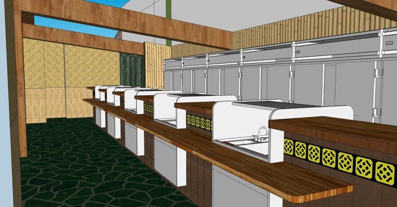 As originally designed, the bar featured equipment that would allow for five popular drinks to be prepped and spirits added. For example: The Barrel O’ Rum (with rum, vodka, bourbon or tequila) and the Mara-Amu (with either rum or tequila, aka the Mexican Mara-Amu). All of the other cocktails originally came out of the expansive main service bar. This posed logistical challenges during busy times, not to mention the puzzled guests who weren’t familiar with Mai-Kai history and wondered why the bartenders in front of them weren’t making their cocktails.