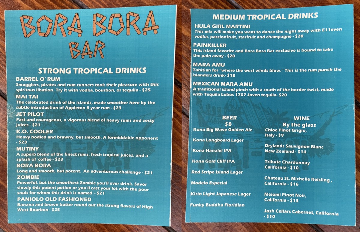 Bora Bora Bar menu just a taste things to come