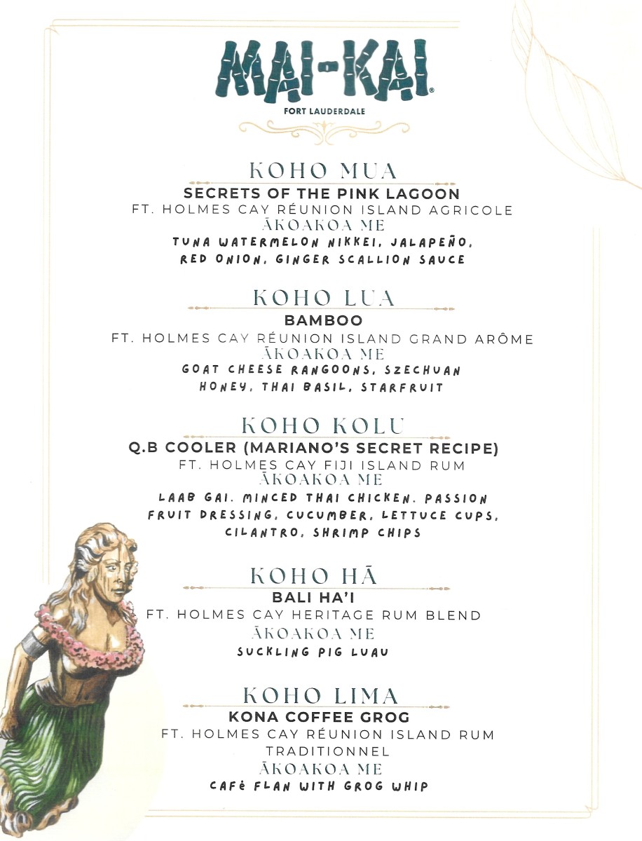Sunday, Nov. 9: The Grand Tasting event from 12:30 to 5 p.m. at the Coral Gables Woman’s Club as part of the annual sampling of hundreds of rums from around the world. The Mai-Kai will host a booth featuring the rum along with merchandise, joining the many distilleries, importers, producers, distributors and boutique brands on display. Tickets range from $89 to $109 and include unlimited samples.