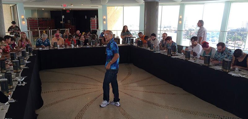 The location is also hard to beat. While South Florida’s heat and humidity can be stifling at this time of year, the location of a boutique hotel directly on the Atlantic Ocean with its gentle breezes and beachfront access makes up for that. The Hukilau takes over the entire 140-room Beachcomber Resort for three nights and parts of four days, meaning the immersion in a tropical paradise is complete. Attendees spill over into other beachfront hotels, and classes were also held this year in a nearby event space.