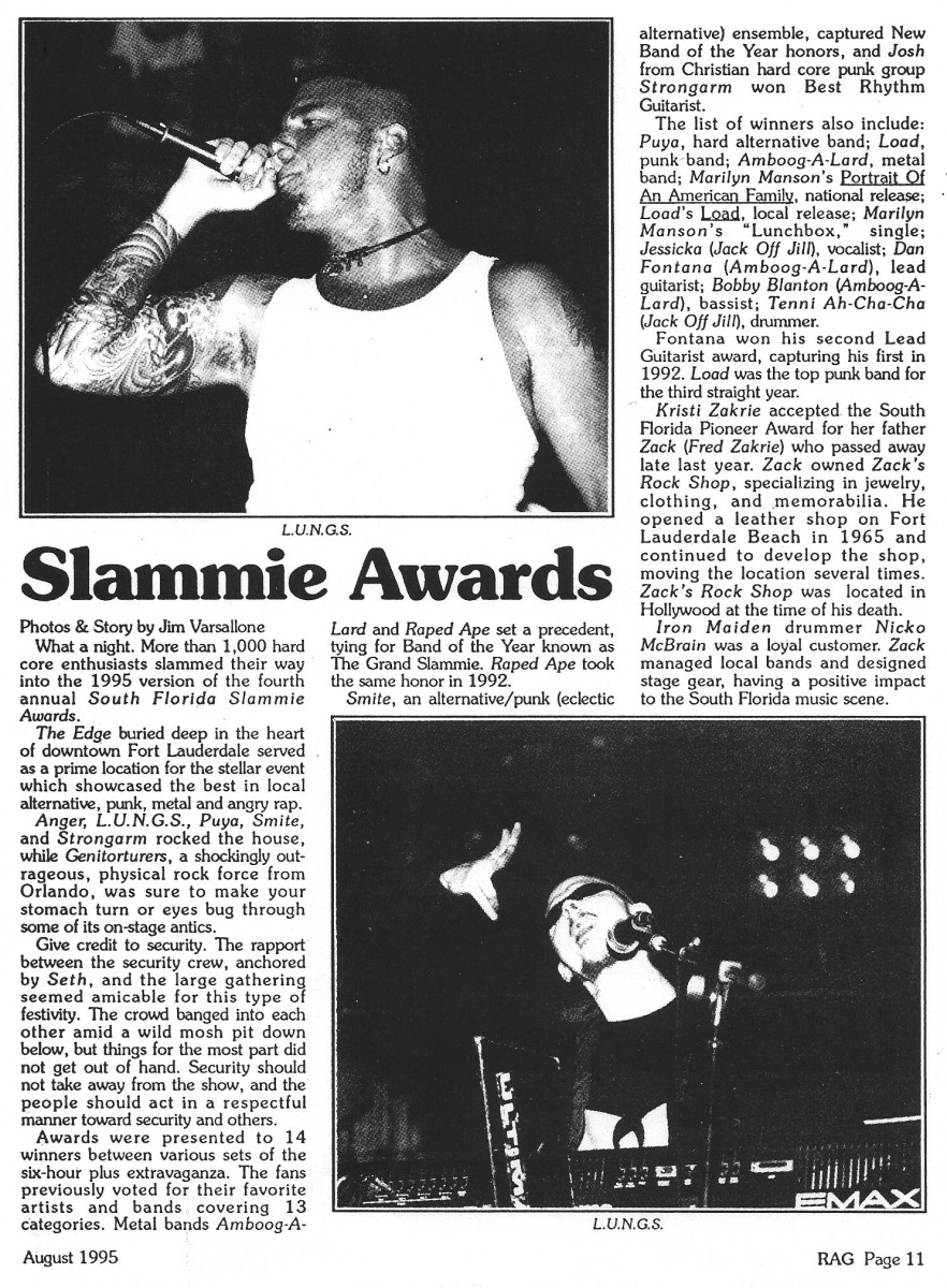 L.U.N.G.S. performs at the South Florida Slammie Awards at The Edge in Fort Lauderdale. (Copyright 1995 / Spotlight Magazine / Mike Smith)