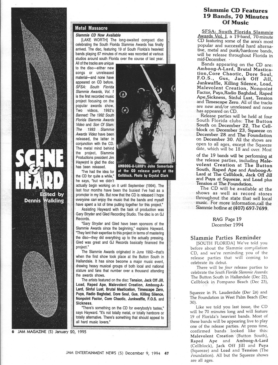 These uncensored tracks encapsulate the aggression and power of the burgeoning scene in the area, which produced dozens of bands that released albums and toured the world in the wake of the era's independent music explosion. They also capture the raw energy of the musicians and their performances, which were on display nightly in local clubs and the annual South Florida Slammie Awards showcase.