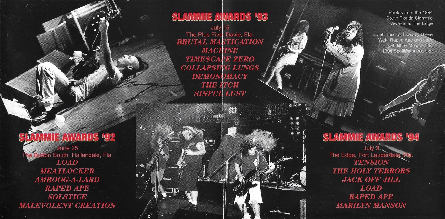 The South Florida Slammie Awards show was held annually from 1992 through 1999, spotlighting the area's top metal, punk, hardcore and alternative bands during a golden era of underground music in the state. Venues and musical tastes changed, but the event remained irreverent and relevant throughout the years.